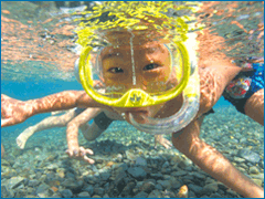 小さなエビや身体のまわりを泳ぐ魚をみつけては、歓声をあげ、泳ぎながら水中を眺める子がいれば、じっと動かずに眺めている子もいる。