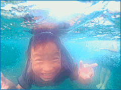 あまりにも楽しすぎて、水のなかでも大きな笑顔。