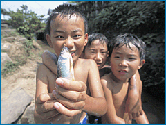 元気な川には、たくさんの生きものに混ざって「川ガキ」と呼ばれる愛くるしい生きものが生息しています。